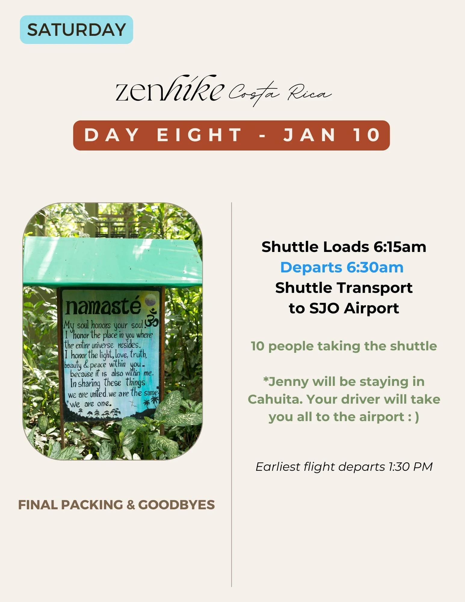 DEPARTURE: On Jan 10, the shuttle/bus takes us back to SJO airport.