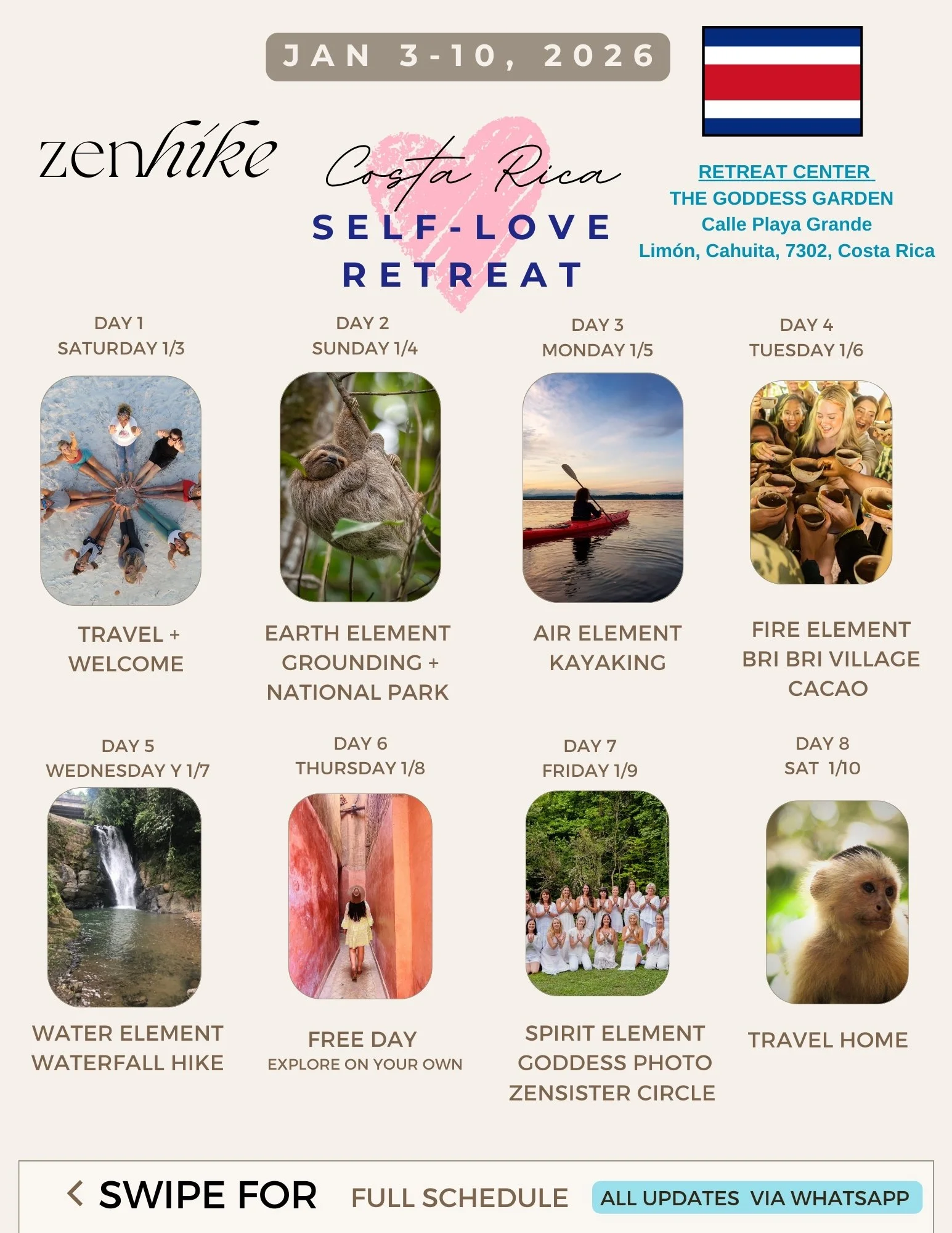 REMINDER **My co-host, Salena, has had a family emergency arise that will prevent her from attending the retreat. She’s in the middle of a custody battle and is required to appear in court during the retreat dates. As much as she wishes she could be with us, she needs to stay close to home for her daughters and cannot leave the country. We’ll be sending her our support and love while we’re in Costa Rica.